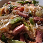 黄瓜、腐皮、鸡蛋、香菜、龙口粉丝、醋、生抽、盐、糖、香油、辣油。