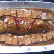 黄鱼、豆腐、盐、料酒、生抽、老抽、醋、植物油、葱花、生姜、大蒜、干辣椒。