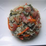 腊肠、胡萝卜、莴笋叶、盐、鸡精。