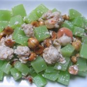 榛仁、扇贝、莴笋、鸡蛋清、盐、料酒、水淀粉。