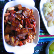 菜花、腊肉、葱花、料酒、郫县豆瓣辣酱、白糖、植物油。