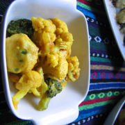 菜花、西蓝花、熟鱼圆、咖喱块。