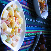 土豆、盐水方腿肉、黄瓜、玉米粒、甜青豆、胡萝卜、盐、沙拉酱。
