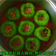 灯笼椒、牛肉、大米、香菜、盐、植物油、鸡精、番茄酱、开水。