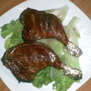鸭腿、小葱、蒜、烧烤酱、生抽、老抽、料酒、蜂蜜、黑胡椒、孜然。