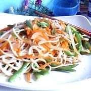 香芹、香菇、黄豆芽、胡萝卜、莲藕、鲜姜、大蒜、水淀粉、胡椒粉。
