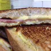 吐司面包、鸡蛋、火腿、芝士片、黑胡椒粒、花生酱。