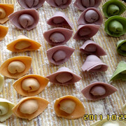 面粉、菠菜、肉馅、胡萝卜、紫薯、葱、姜、小虾皮、压面机、榨汁机、紫菜、料酒、十三香、鸡精。