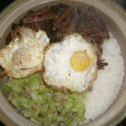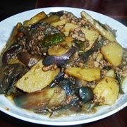茄子、土豆、辣椒、肉末、盐、豆瓣酱、鸡精。