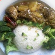 鸡腿肉、土豆、洋葱、干辣椒、西兰花、咖喱、盐、黑胡椒。