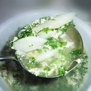 山药、荠菜、鸡蛋、肉末、鸡精、盐、香油。