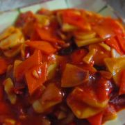 年糕、胡萝卜、洋葱、豆瓣酱、番茄酱、糖。