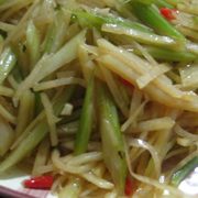 土豆、西芹、油、葱花、蒜末、小辣椒、盐、酱油、醋。