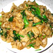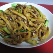 豆腐皮、油菜、肉丝、葱花、蒜末、青椒丝。