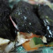 米饭、黄瓜、胡萝卜、活虾、鸡蛋、海苔、盐、料酒、香醋、糖、味极鲜、食用油。