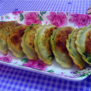 面粉、韭菜、虾仁、鸡蛋、盐、味精、香油、料酒、植物油。
