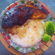 鸡腿、西兰花、米饭、生抽、蜂蜜、料酒、白糖、水、盐、五香粉。