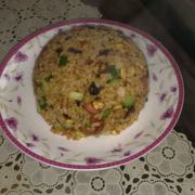 剩米饭、胡萝卜、火腿肠、洋葱、黄瓜、木耳、鸡蛋、蚝油、盐。
