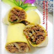 牛肉片、鸡蛋、香菜、香菇、蒜、香葱、豆芽。