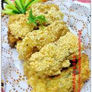鱼肉、白芝麻、姜末、黄酒、胡椒粉、盐、鸡精、植物油、干淀粉、鸡蛋。