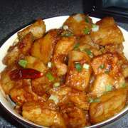 土豆、带皮五花肉、葱、姜、蒜、大料、老抽、海椒、花椒。