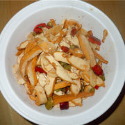 泡山椒、五香豆干、红辣椒、盐、花椒、蒜、生抽、味精。