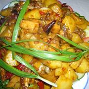 土豆、芋头、葱姜蒜、花椒八角、辣椒酱、味精。
