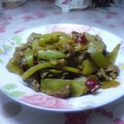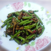 豆角、肉丝、干辣椒、淀粉、料酒、酱油。