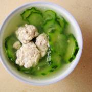 丝瓜、肉、鸡蛋、姜丝、玉米淀粉、盐、生油。
