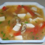 蛏子、豆腐、蕃茄、肉汤水、干辣子、盐、小葱。