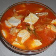 泡菜、豆腐、猪肉、盐、鸡精、干辣子、小葱。