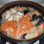 活螃蟹、鱿鱼、活虾、贻贝、蛏子、鲜猪肉、盐、辣子。