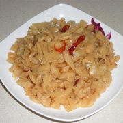 面、鲜猪肉、卷心菜、香干、干辣子、酱油、盐、老干妈干辣酱、鸡精。