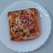 吐司、散芝士、熏肉、青豆罐头、番茄酱。