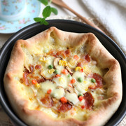 高筋面粉、清水、橄榄油、白糖、盐、酵母、披萨酱、萨拉米、火腿肠、口蘑、马苏里拉奶酪、披萨草、青豆、玉米、胡萝卜。