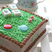 八寸方形戚风蛋糕、蓝莓酱、淡奶油、酸奶、吉利丁、淡奶油、翻糖、进口色素。