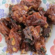 排骨、姜块、葱、八角、料酒、酱油、糖、盐、醋。