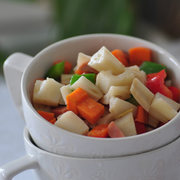 莲藕、胡萝卜、彩椒、火腿、盐、鸡精、胡椒粉、花椒。