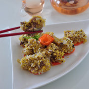 粉丝、猪肉糜、姜、盐、鸡精、胡椒粉、白糖、酱油、葱。