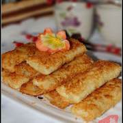 低筋面粉、细砂糖、黄油、蛋黄、水、盐、蒸熟的南瓜、椰汁、椰蓉、糖、鸡蛋。