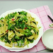 豆皮、香菜、红辣椒、葱白、盐、鸡精、麻油、花椒粉、热油。