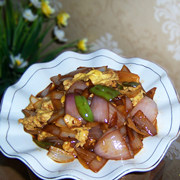 洋葱、鸡蛋、青椒、油、盐、酱油。