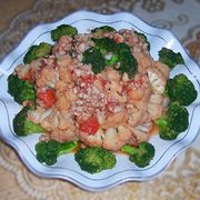 菜花、西兰花、西红柿、猪肉、油、盐。