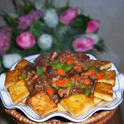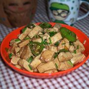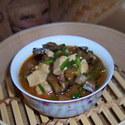 卤水豆腐、干香菇、胡萝卜、洋葱、辣椒、猪肉丁、油、盐、番茄酱、蒸鱼豉油、鸡精。