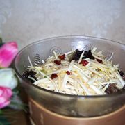 白菜心、粉丝、干红辣椒、黑木耳、油、盐、白醋、生抽、姜丝、葱、香油。