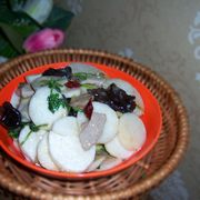 山药、黑木耳、肉片、香菜、油、盐、葱、姜、米醋。