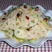 藕、红辣椒、香菜、油、盐、葱、姜、味精、白醋。