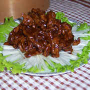 猪肉、鸡蛋清、葱丝、生菜叶、油、盐、料酒、淀粉、白糖、甜面酱。