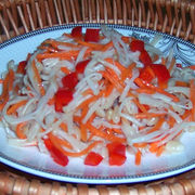 金针菇、胡萝卜、红辣椒、盐、醋、味精、辣椒油、味极鲜。