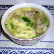 双胞菇、鸡蛋、香菜、虾皮、油、盐、香油、葱。
